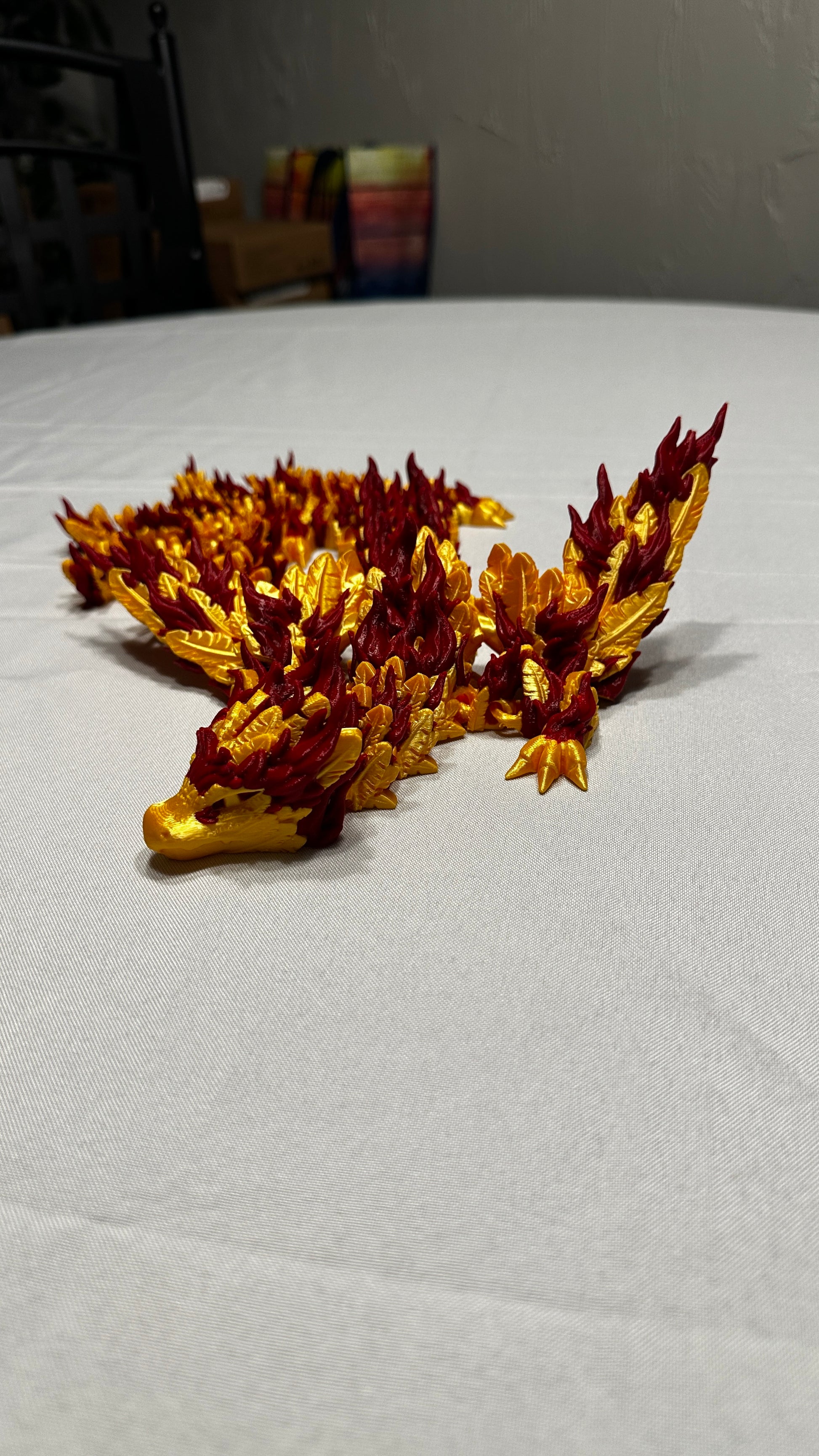 Rising from the ashes in stunning detail, this Phoenix Articulated Dragon is a fully 3D-printed, poseable creation designed to move with lifelike fluidity. Each segment is carefully engineered to articulate smoothly, allowing the dragon to coil, slither, and strike dynamic poses straight off the printer—no assembly required.