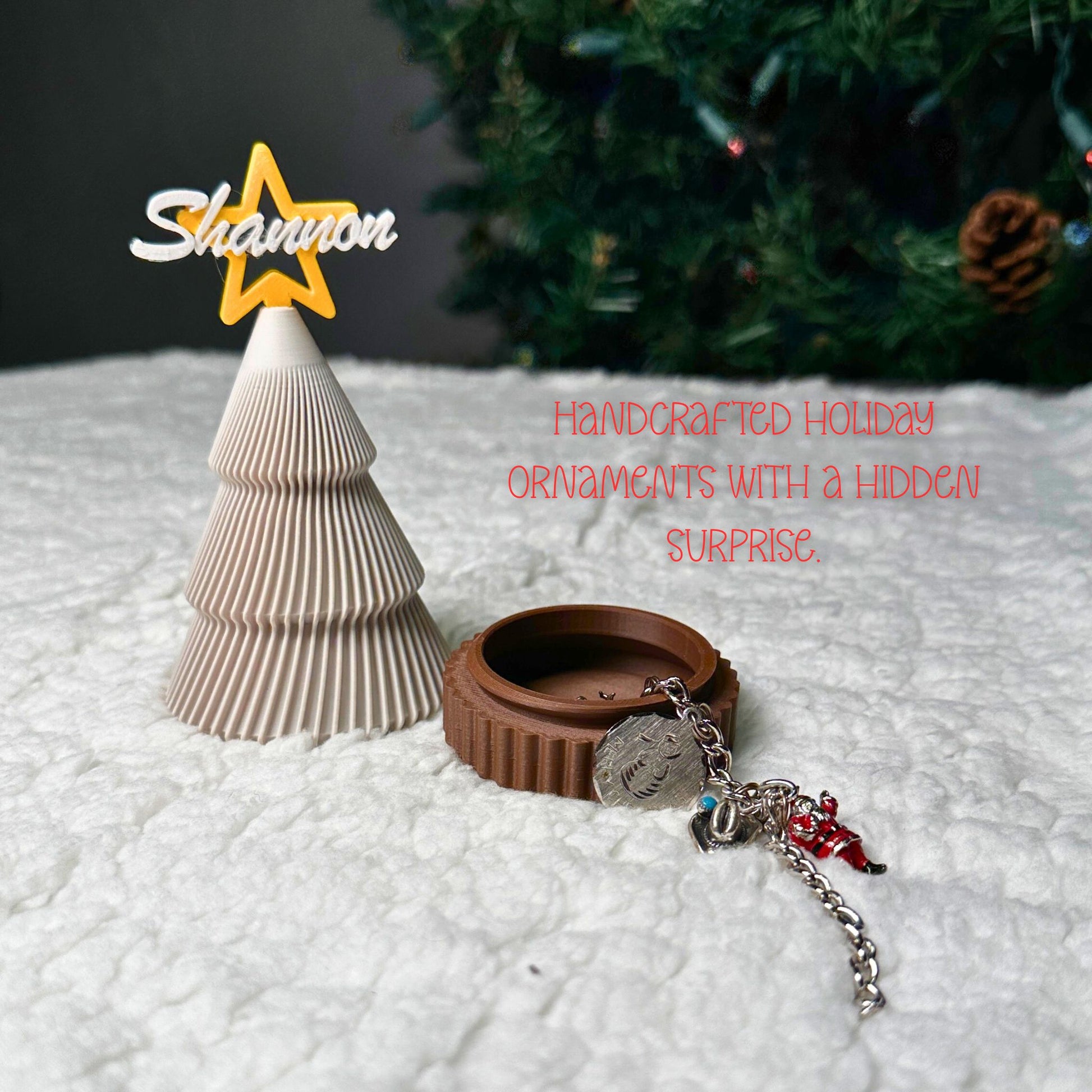 Warm, cozy and timeless - the Small Hearth Collection Winter White Christmas Keepsake Tree brings rustic elegance to your tree. Each ornament can be displayed on your mantle, or hung on your Christmas Tree and hides a secret compartment for a small surprise, Great for stocking stuffers or a Secret Santa gift. Order a custom star (sold separately) and use as a placeholder on your table at Christmas dinner. These trees are creative, heartfelt and will be cherished for years.
